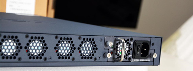 再来看电源设计,笔者发现TG-NET设计了2个热插拔内置式冗余电源,其好处是可以保证其中一个电源出现故障可不间断的保障设备正常运行。并且都使用高端的材料,通过笔者的简单测试,质量还是非常不错的。