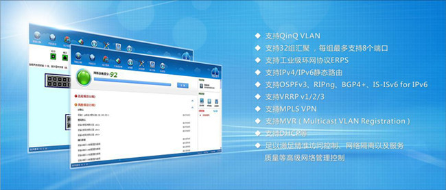 在网络安全与网络管理方面S6500-24TF-2QF也表现突出,MAC+PORT+Vlan绑定,IP/MAC ACL、802.1X认证、端口隔离、风暴控制。HTTP、SSH、SNMP、RMON管理方式齐全,网络维护更便捷。