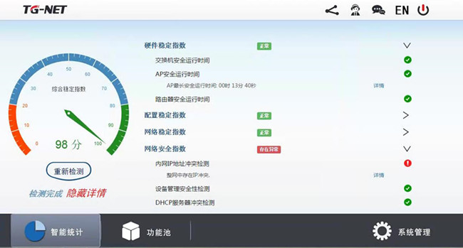 6. 云盒子一键检测功能,可以让管理员及时发现现网问题并及时解决问题。